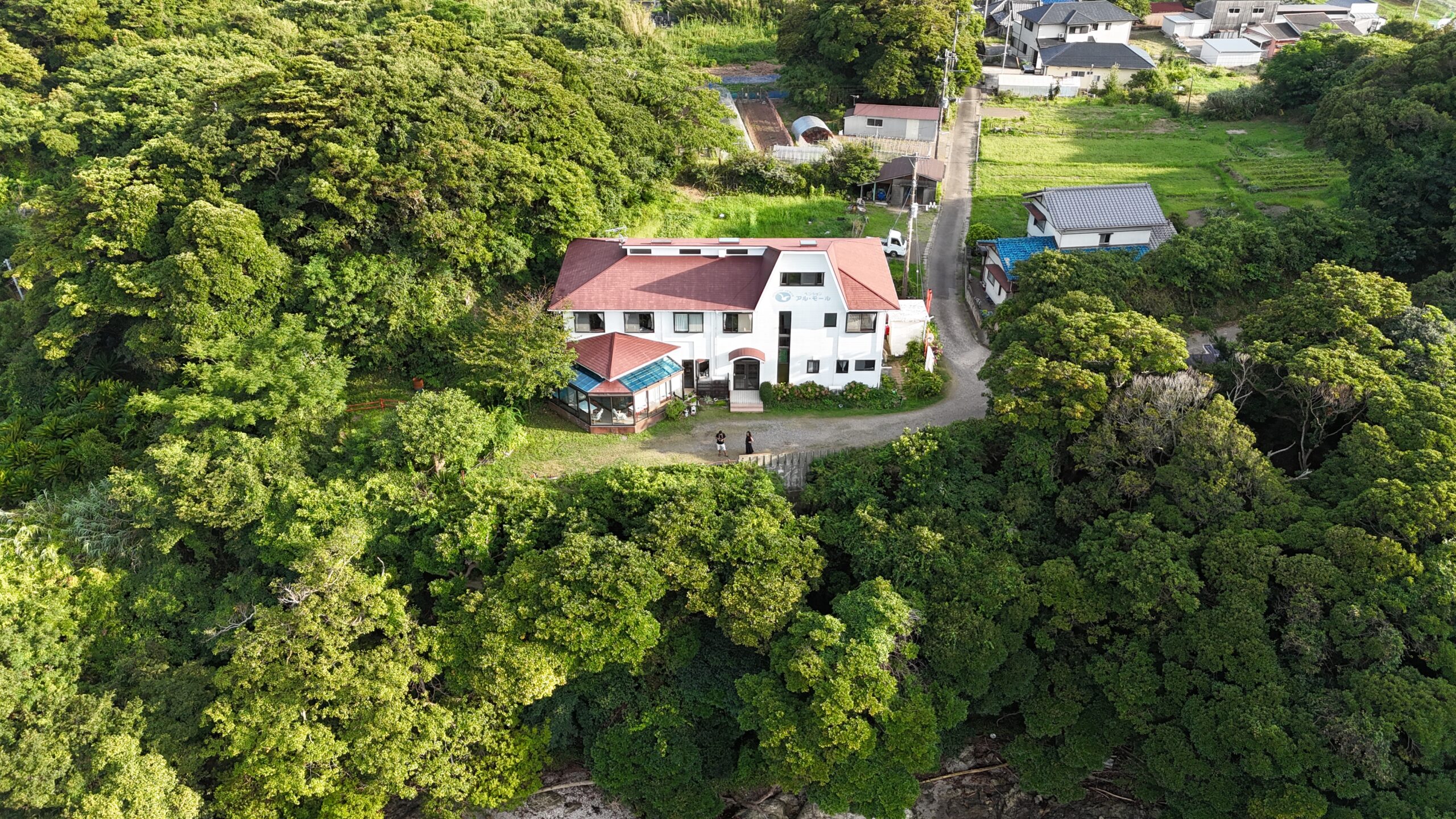 小さな半島の高台に当館はあります。緑豊かなで、三方を海に囲まれたアル・モールの丘。海で釣りをするも良し、自然散策をするも良し。